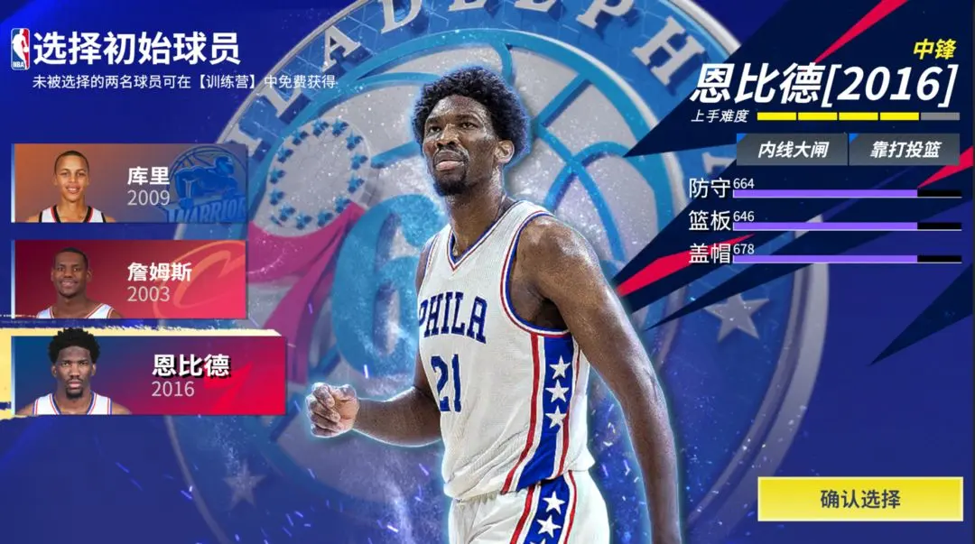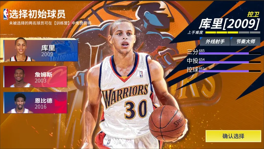 各位“巨星”首次登录游戏完成起名后,在初始球员选择界面会遇到三选一的选项:新秀库里、新秀恩比德和新秀詹姆斯。这三位新秀球员会在游戏前期陪伴各位“巨星”开启联合试训的旅程。在这篇攻略里,本吉祥物将详细讲解这三位球星的特性,助力各位“巨星”做出最适合的选择,并快速掌握这三位新秀球星的玩法,在赛场上称霸!