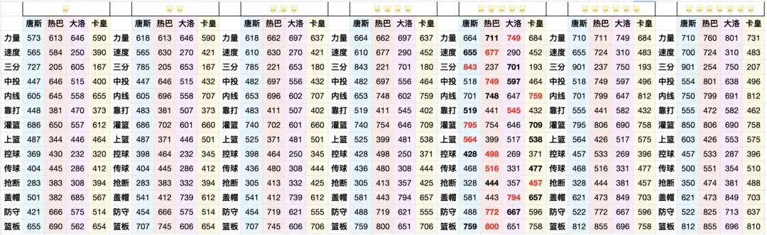 综合来看,唐斯的空间拉开与三分投射能力更为出色,阿德巴约在篮板拼抢和补防协防方面表现更强,大洛佩兹具备顶尖的盖帽水准和不俗的空间三分威胁,卡佩拉的内线终结能力勉强尚可。特别是在当前扣篮型球员优势明显的版本环境下,唐斯与大洛的战术价值愈发突出;阿德巴约如同蒙尘的明珠,仍有极大的潜力待挖掘;而卡佩拉若非核心阵容刚需或特别偏爱,并不建议优先选择。