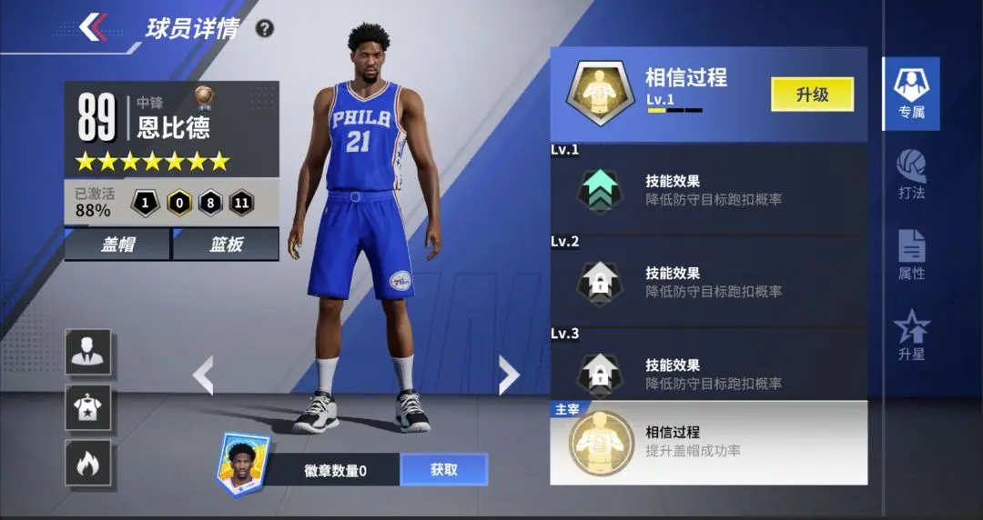 ○打法特色:升级新秀恩比德至3星后,将解锁主宰技能,其盖帽能力会得到进一步增强,同时还会解锁抓帽技能!