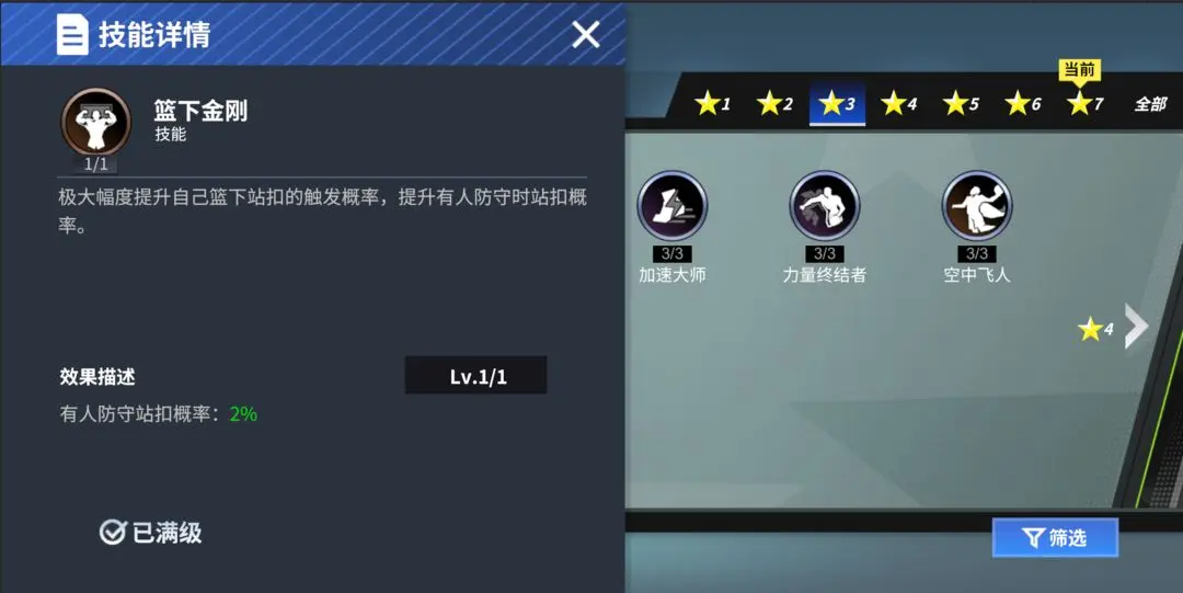 ③主宰技能:提升压制扣篮概率和扣篮抗盖帽