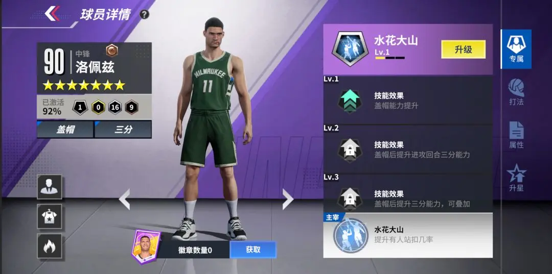 ■专属技能:增强盖帽表现与三分投射精准度,完成盖帽后还能进一步提升三分命中率