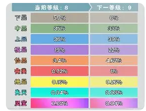 装备的品级共有8种不同品质,提升神鼎等级可以增加获得高品质装备的概率,按品质从低到高排列如下: