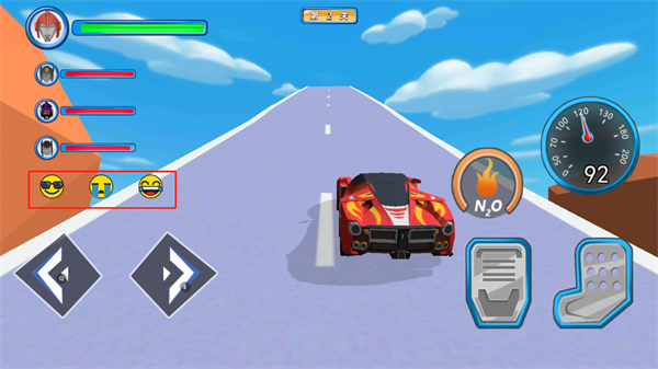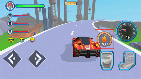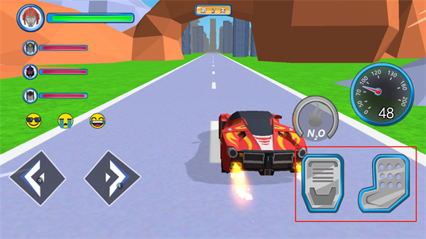 点击右下角的按钮可以实现加速功能,而它旁边的按钮则是用于刹车的。