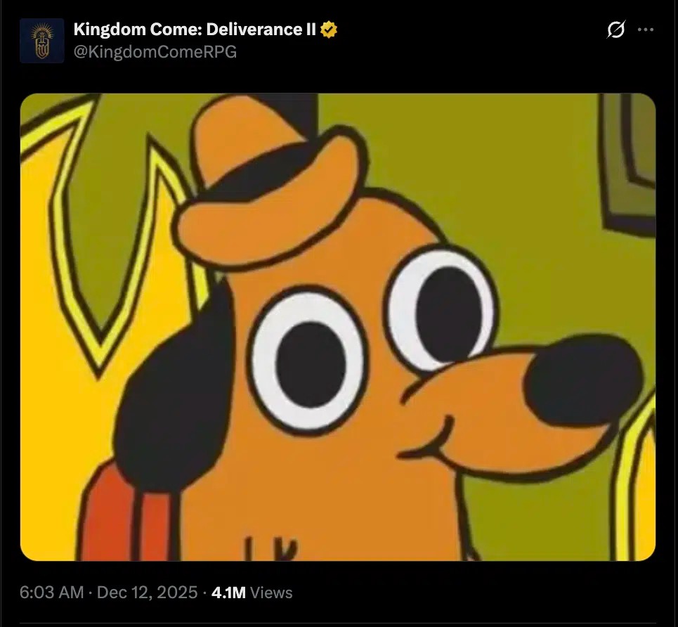 这一点从《天国:拯救2》官方Twitter/X账号的推文就能得到印证——该账号分享了互联网上极具标志性的梗图之一:“一切都好”(This is fine)梗里那只被火焰包围的狗狗。虽然推文没有附带任何文字,但这张梗图已经清楚地表明,他们对《光与影:33号远征队》获得最佳角色扮演游戏奖项这件事心存不满。