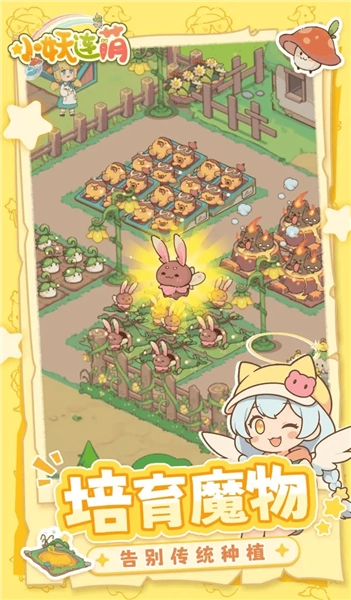 《小妖连萌》是一款异世界背景的治愈系模拟经营游戏。和传统种田游戏不同,玩家在游戏里无法种植普通植物,核心玩法是培育各种可爱的魔物。这些魔物能产出不同资源,玩家可以通过各类建筑对资源进行加工、售卖,将其转化为金币或庄园升级材料。之后用这些收益升级魔核田与建筑,解锁新的魔物,逐步形成良性循环。此外,玩家还能自由调整庄园地形,搭配建筑和装饰,打造独一无二的专属家园。