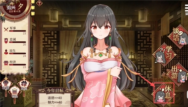 当疲劳值累积到一百时,我们就点击休息按钮,完成当天的属性结算即可。