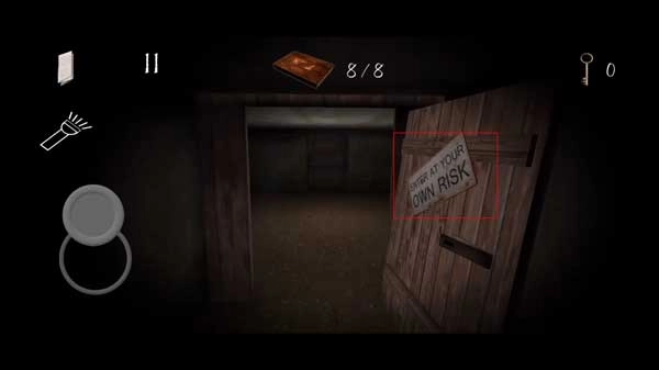 3、第一本书藏在门后,只要对准它就能将其拾取。游戏过程中玩家偶尔会遭遇各类鬼物,部分鬼物的攻击力十分强悍,务必多加小心防范。