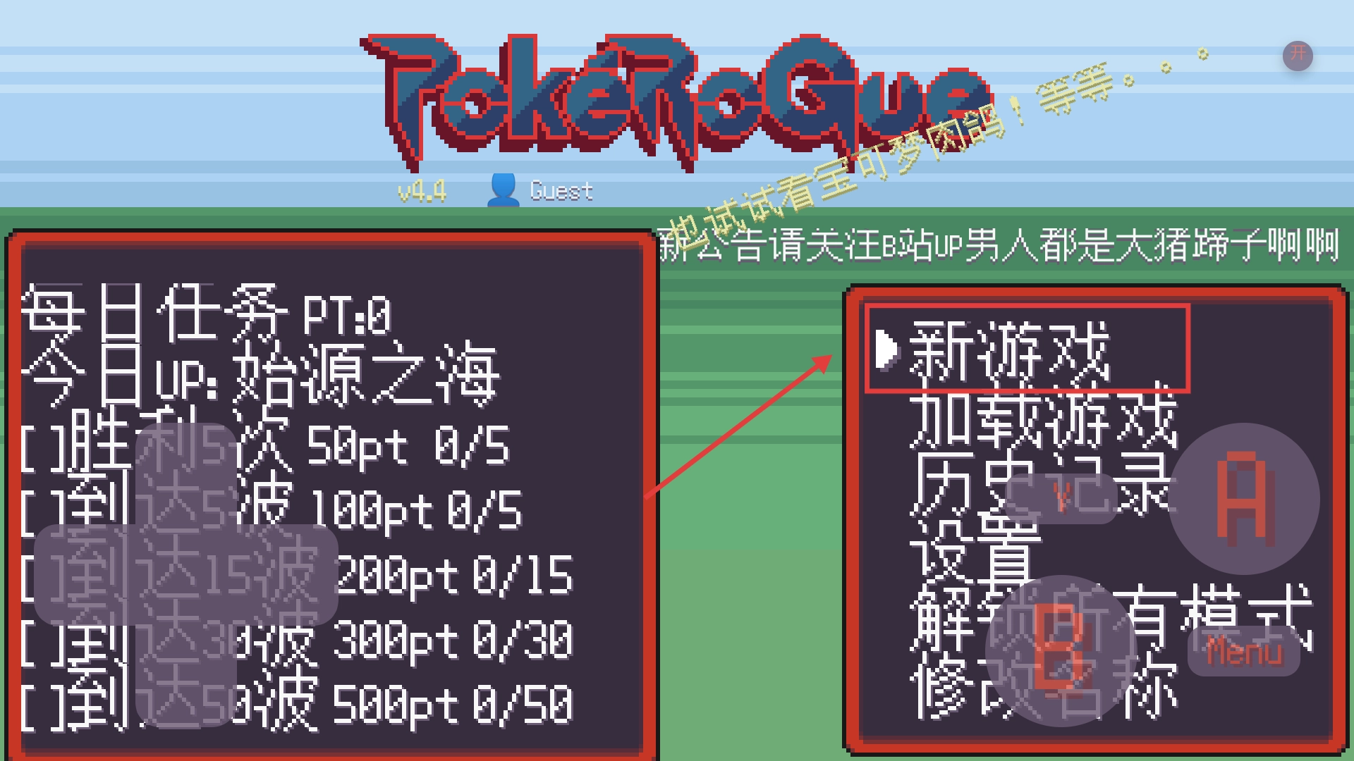 1、主界面选【新游戏】开始冒险,留意每日任务进度,初始阶段优先推进主线解锁更多功能。
