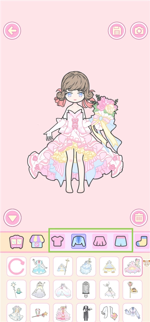 然后玩家就可以为芭比选择美丽的礼服了,也可以进行上衣下衣等套装搭配。