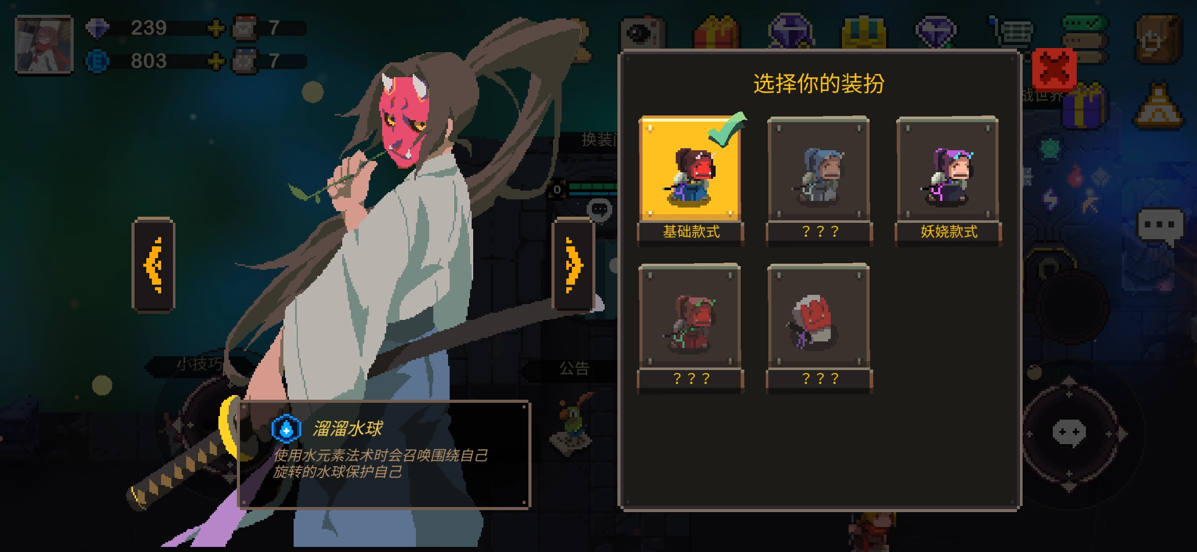 我用的是武士原皮,水属性施法时会出现一个水球,因此天赋选了水伤害加成,佩戴的蓝宝石宝物也能提升水属性伤害,所以我需要选择以水属性伤害为核心的法术,目前用的是水龙息术和腐蚀术。