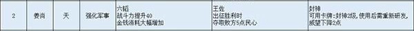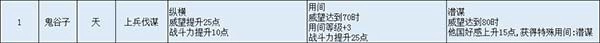 技能2(用间):当威望数值达到70时,用间等级会增加3级,同时战斗力提升25点;