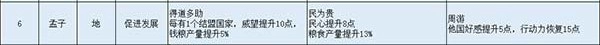 技能3(周游):他国好感增加5点,行动力恢复15点。