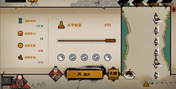 技能1(六韬):可使战斗力提升40,但金钱消耗会显著增多;