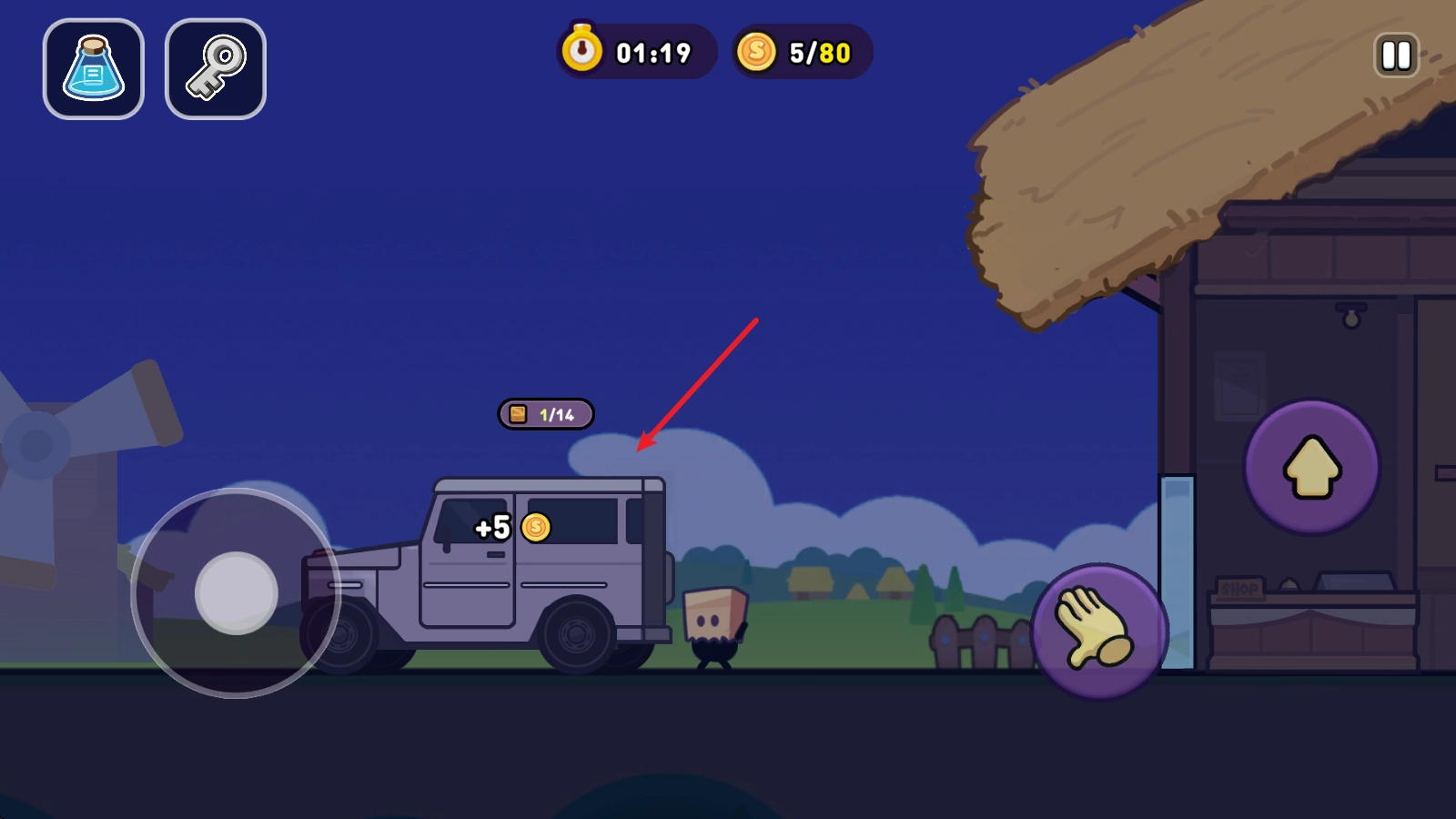 靠近物体后,点击右侧的小手图标就能抓取物品,同时还会显示该物品的对应价格。