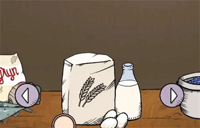 3、备齐制作蛋糕所需的材料后回到家中,进入厨房,点击厨房右侧的橱柜,随即会弹出材料相关的页面。