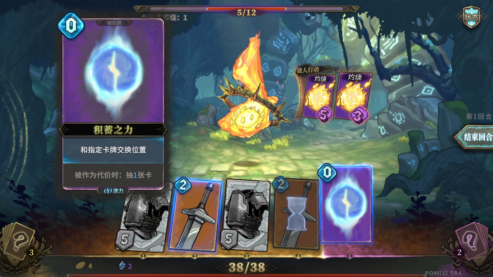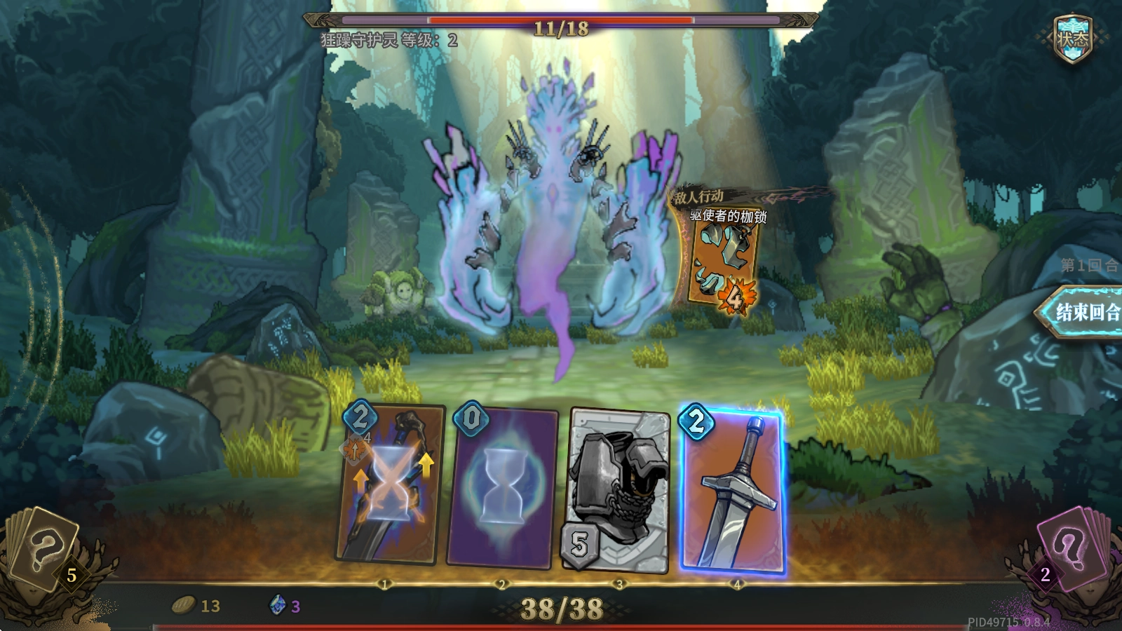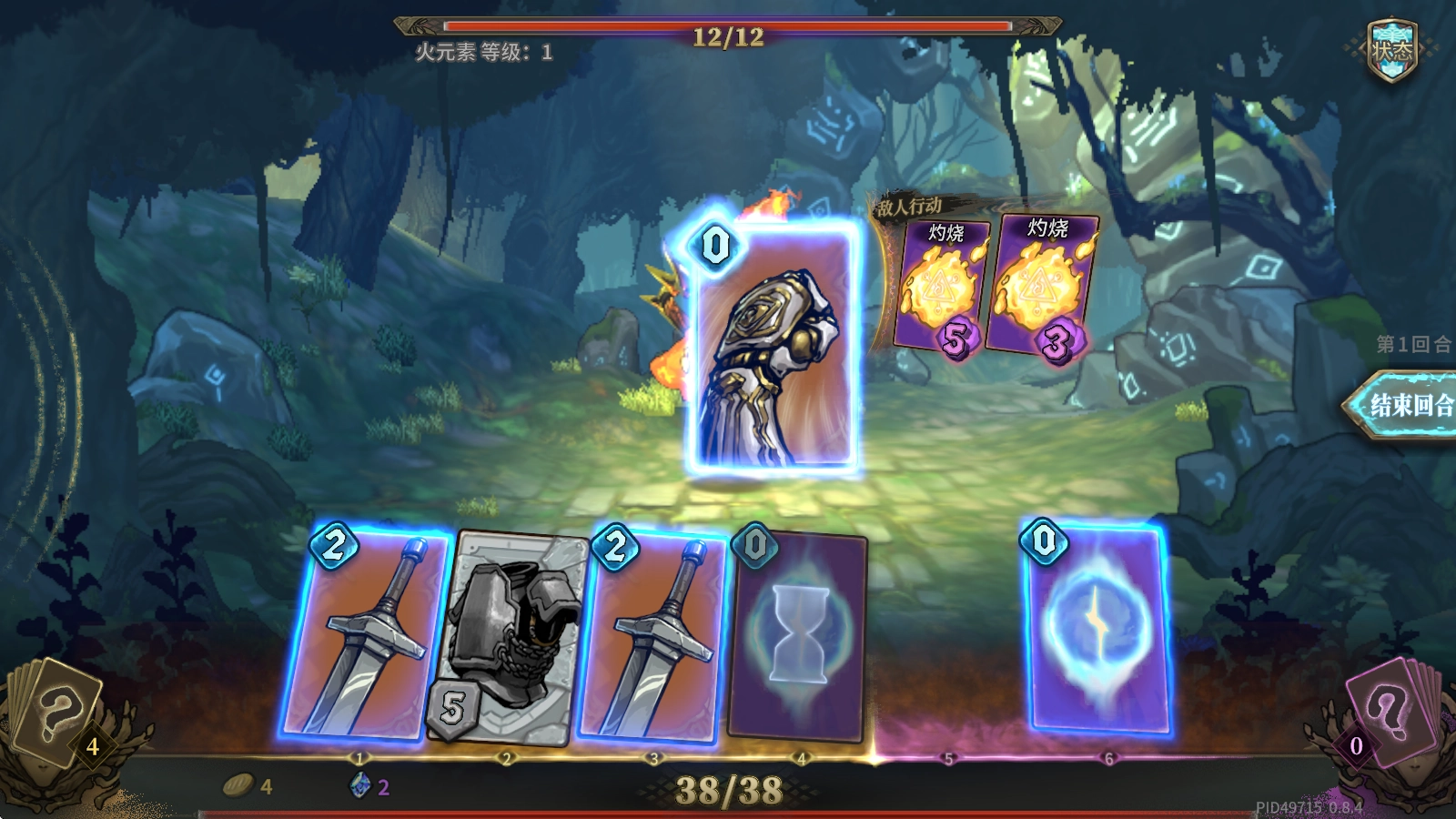 4、部分卡牌的使用需要消耗费用,这个费用就是卡牌左上角标注的数字,比如这里的剑卡牌,就需要消耗右侧的两张卡牌才能使用。