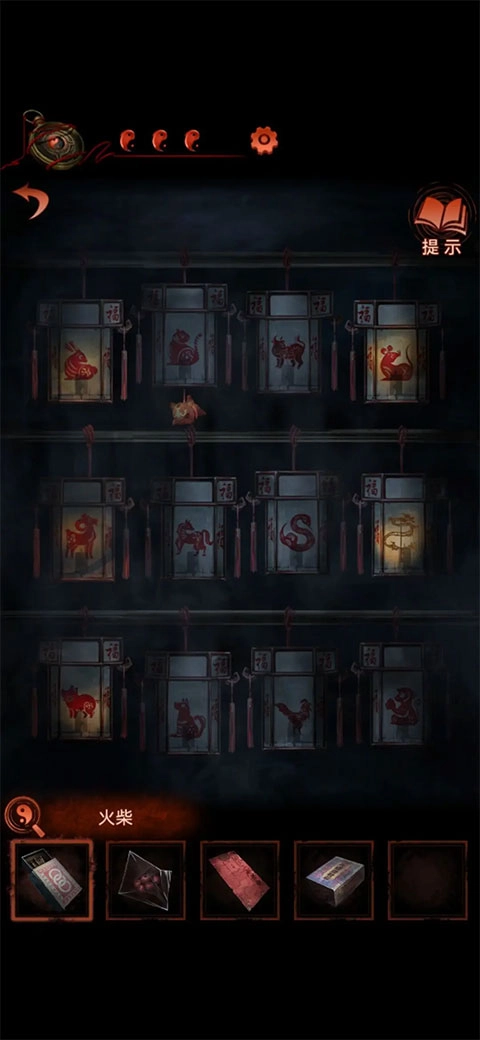 4、切换至最左侧场景的轿内,发现红纸背面带有生肖图案,同时还能找到绣花鞋盒。