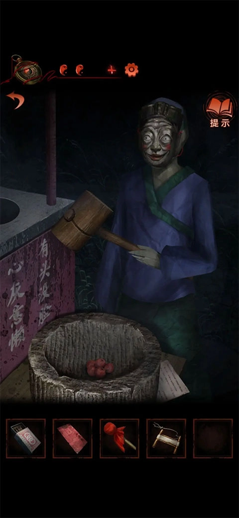 接下来前往右侧场景,将面具戴在纸人脸上,把山楂放置进去,就能获得“子弹”。