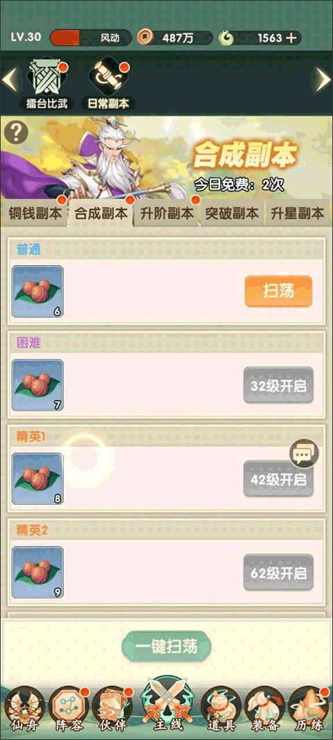 铜钱副本:通关后能获得大量铜钱。在游戏前期提升角色时,想必大家都常遇到铜钱不足的情况,而这个副本能大幅缓解铜钱消耗带来的压力。等角色调整到位后,还可以花费少量仙玉进行扫荡,既节省时间又省心省力。