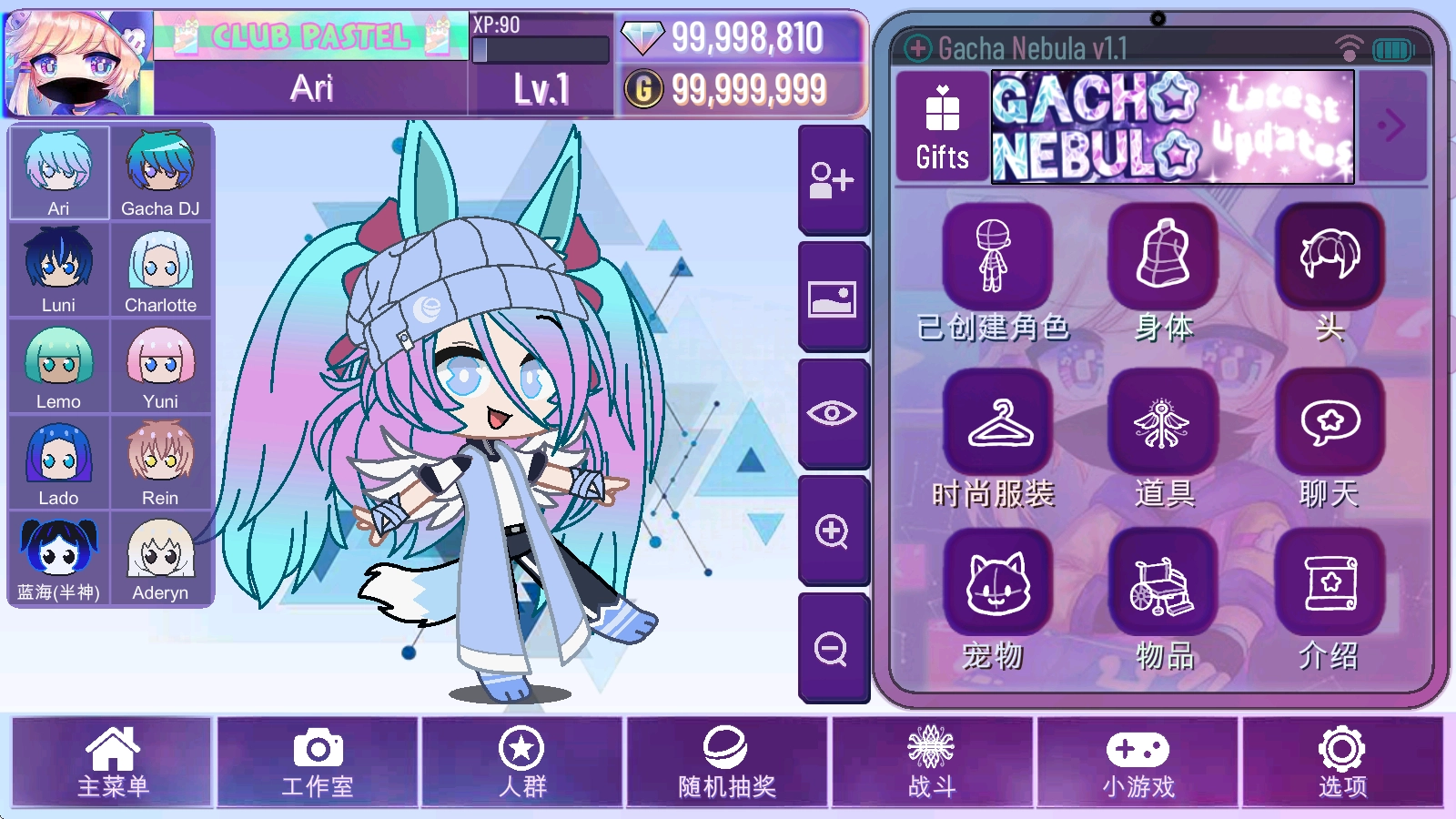加查星云最新版是粉丝Noxula基于《加查俱乐部》制作的模组,英文名为Gacha Nebula。它延续了原版的风格与玩法,新增了太空主题背景和更多精致装扮,为玩家提供更丰富的选择。在游戏里,玩家能自由设计角色,从海量发型、服饰、武器道具、宠物和背景中挑选,打造独一无二的专属角色。此外,还可以养成角色,参与趣味战斗冒险,享受别样的二次元休闲体验。