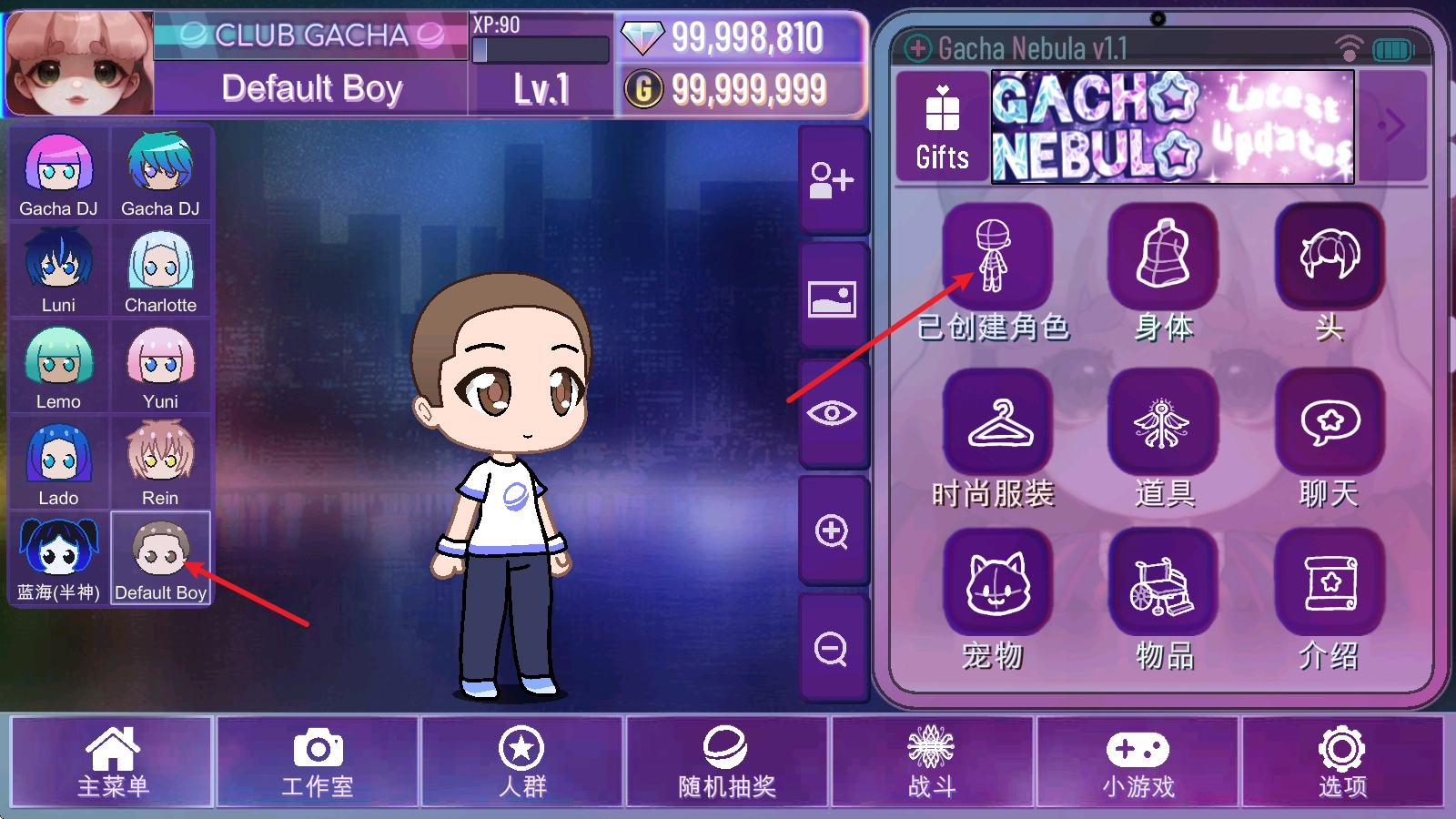 首先我们先确定一个初始角色,接着点击右侧已经创建好的角色。