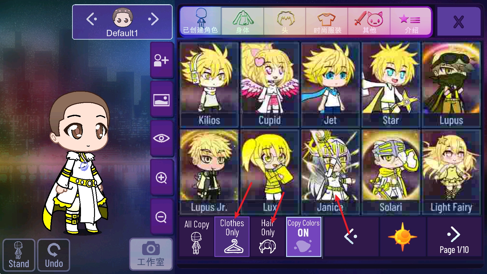 要是不需要完整复制,你可以点击下方的“只复制衣服”,或者选择“只复制头发”。