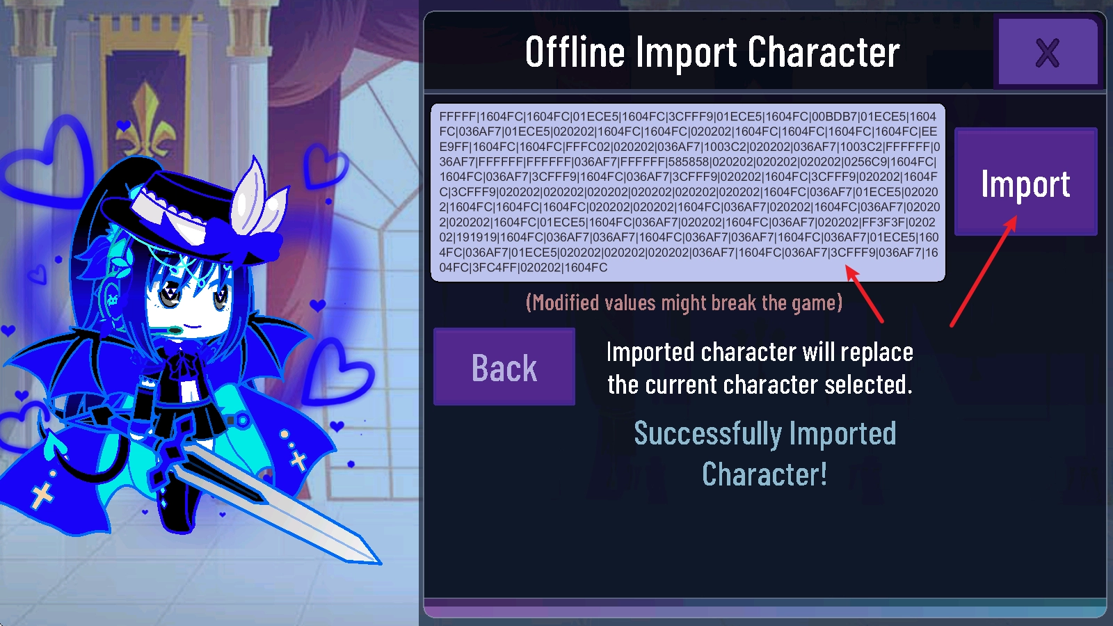 在最后这个界面的输入框里粘贴人设代码,接着点击import按钮就可以了。