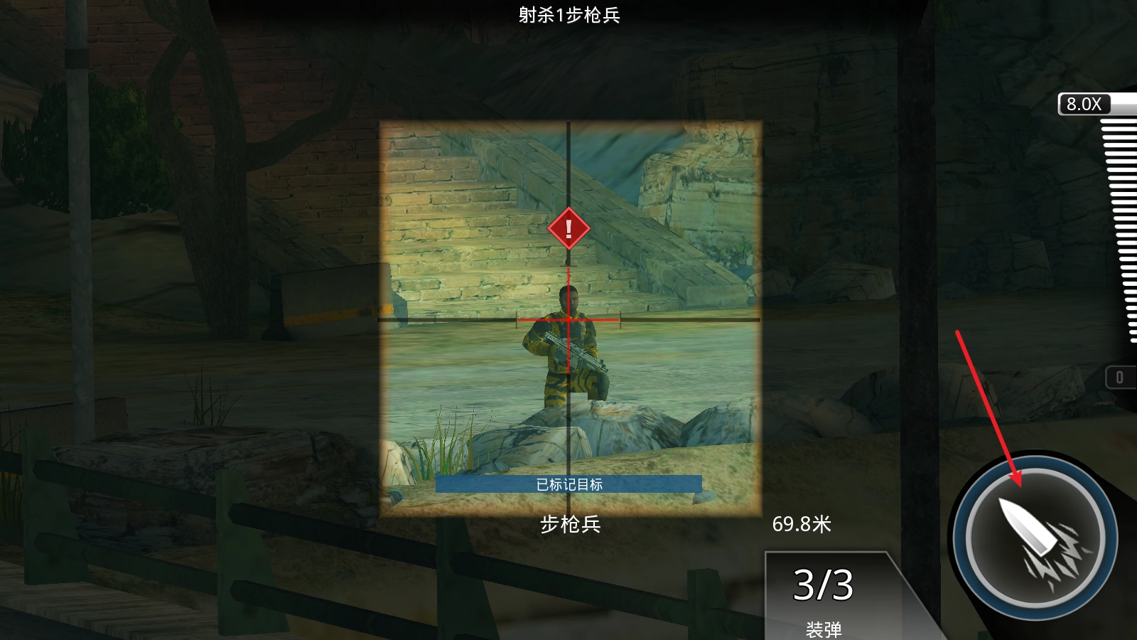 找到目标后拖动右侧的拉杆即可打开瞄准镜。