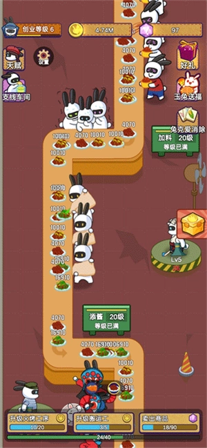 在《兔克创业记》里,你将化身领导者,带着一群萌趣十足的兔克伙伴们共同经营工厂。游戏过程中,你需要亲手规划专属的流水线,打造出琳琅满目的特色产品——既有烤鸭、珍珠奶茶这类让人垂涎的美食,也不乏西瓜棒冰、大哥大这样满含复古情怀的物件。你的核心任务是推动工厂持续运转,同时不断钻研新的技术,让自家产品在市场竞争中脱颖而出。这款游戏的趣味之处在于,它并非简单的产品生产模拟,你还得琢磨如何优化流水线布局、提升生产效率、削减运营成本,唯有如此,才能收获更丰厚的收益。