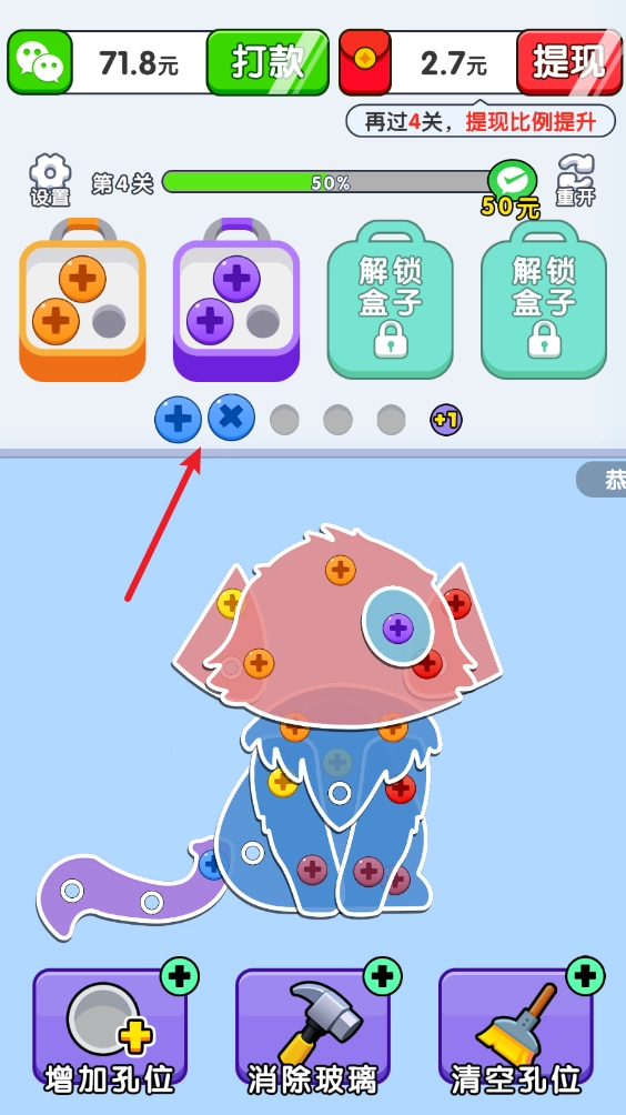 在游戏里,点击图案上方的螺丝,就能把它放进对应颜色的盒子里。