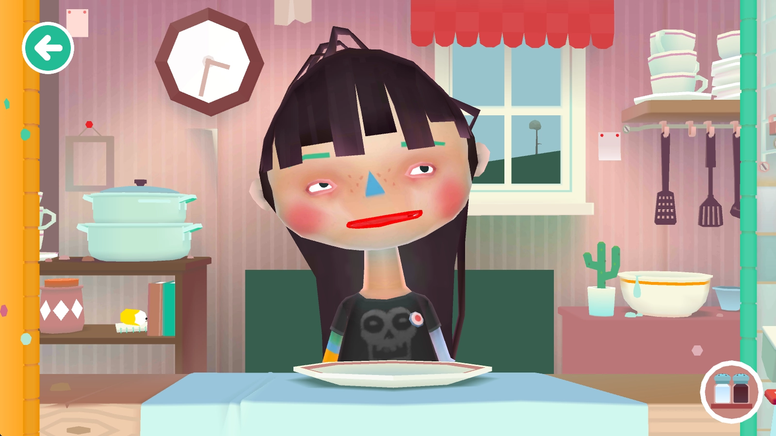 制作完成后,把它拖到角色的嘴边,她就会开始享用,通过观察她的表情就能判断食物是否美味。