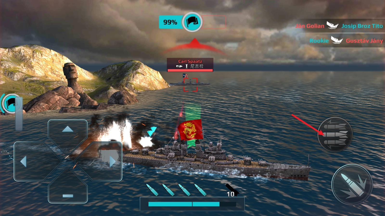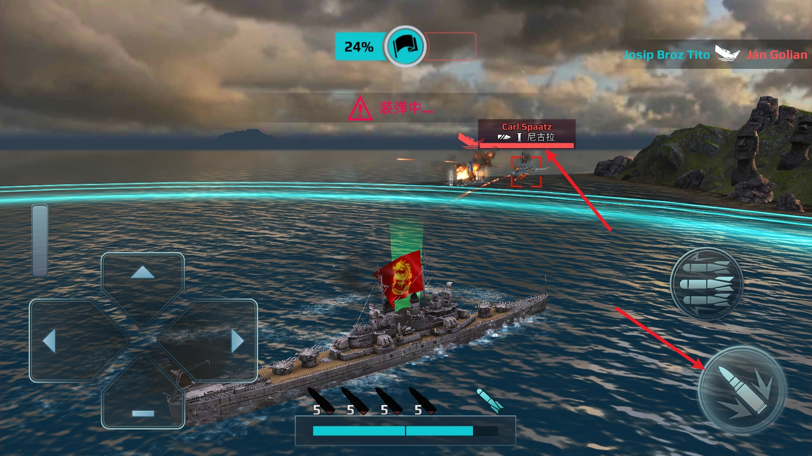 战舰侧向面对敌人的时候,可以发射鱼雷。
