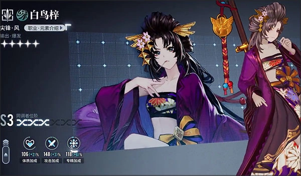 首先要提到的是不少玩家都比较熟悉的白鸟,作为后期推出的原创角色,制作团队在其角色设定和技能设计上投入了不少精力,堪称风系输出与爆发能力的典型代表。作为尖峰职业里极具特色的角色,白鸟的单点爆发伤害十分突出,同时具备单体攻击和群体攻击能力,再加上多重技能带来的伤害加成,在输出表现上可以说是无可挑剔。