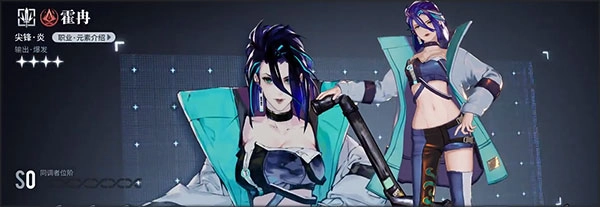 这是唯一一个四星级别的尖峰角色,属性为炎属性。它是上面那位角色的下位替代,输出和爆发能力都相当不错。不过,与上面那位拥有范围性伤害的角色相比,该角色的整体单体输出能力更为突出。它的所有技能都旨在加强单体输出能力,能够有效对抗敌人中的精英敌人和特定角色。