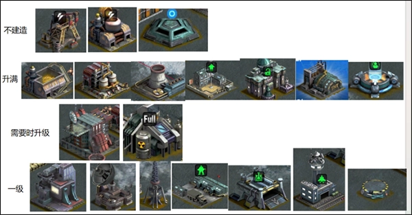 -资源型建筑主要涵盖金属库、石油库、铀库和发电站。这里建议金属库与石油库只要满足升级条件就及时升级,铀库和发电站则根据实际需求再进行升级。在游戏前期,建造两座金属库,再搭配石油库与发电站就足够使用了。另外,冶炼厂和油井不建议升级,更不建议建造!