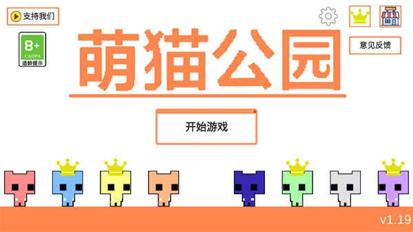 通过本站获取萌猫主题的公园冒险游戏并完成安装后,启动游戏进入主界面,后续可前往的道具商城选购各类游戏内物品。