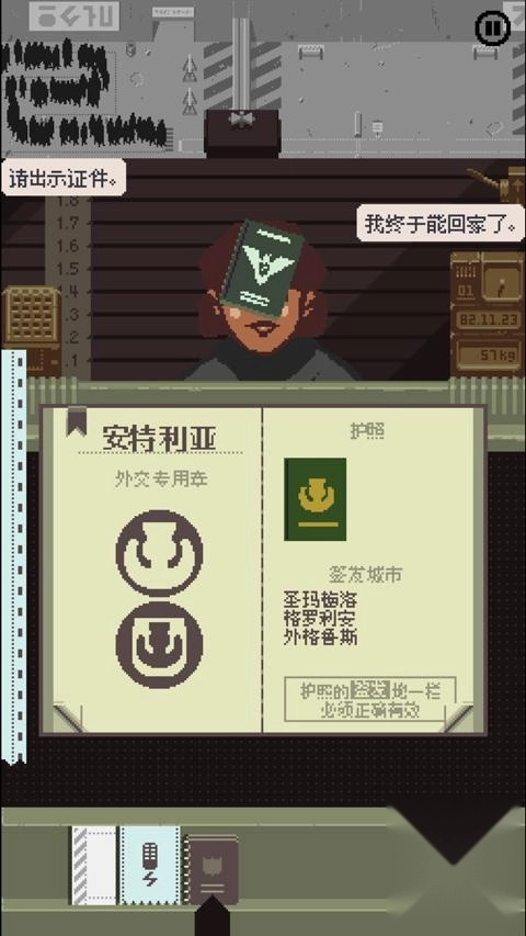 《请出示证件》是一款相当有意思的角色扮演游戏,游戏整体营造出压抑的氛围。玩家在游戏里要扮演检察官的角色,每一个判断都举足轻重,得及时应对各种状况、审核各类人员,一旦出现失误,就可能引发严重的动乱。