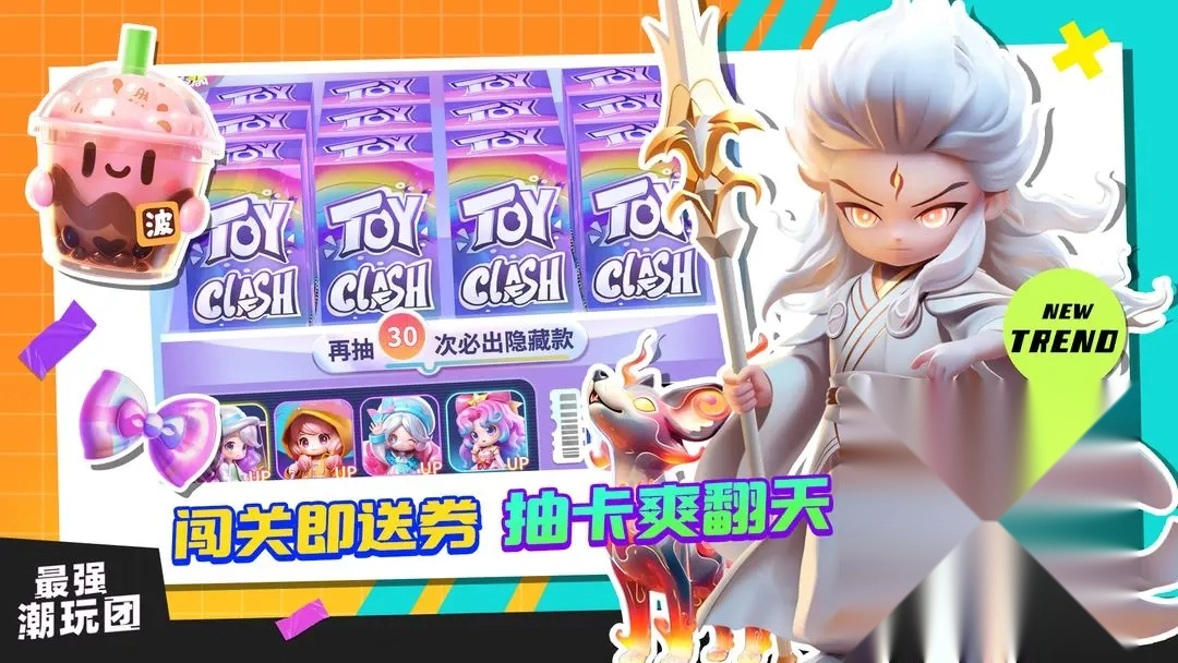 1. 潮玩盲盒主题:游戏设定在潮玩盲盒的世界里,玩家能通过开启盲盒收集到各式各样精致的玩偶角色。这些玩偶除了拥有萌趣的外形,还拥有不俗的战斗实力。
