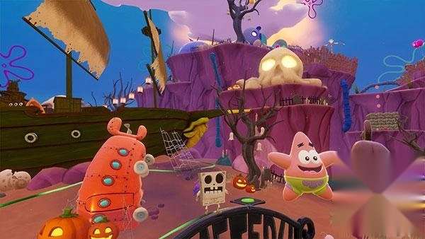 2、合作模式:支持多人在线协作玩法,玩家能够和Patrick Star、Squidward、Sandy Squirrel等系列角色一同展开冒险。