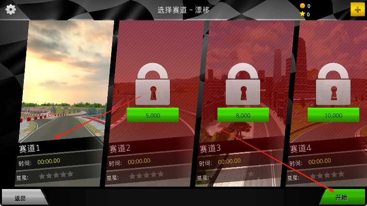 6、选择赛道1,并点击右下角的“开始”按钮。
