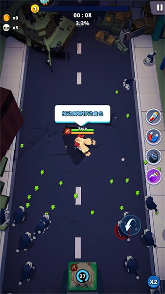 1、拖动屏幕即可操控角色移动,灵活调整位置以躲避敌人的攻击。