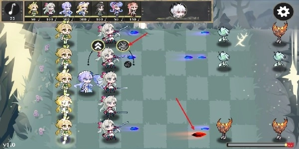 1、进入游戏后,我们需要先种下维里奈(也就是向日葵)来获取音符,天空中也会随机掉落音符。