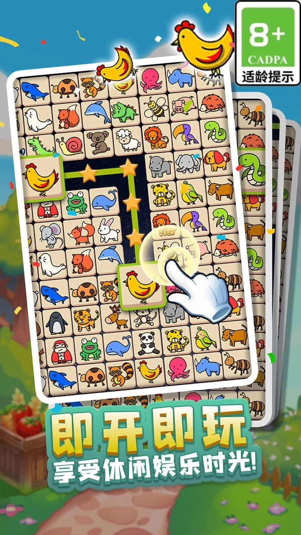 《宠物开心连》是一款趣味十足的手机休闲游戏,玩家需将两个相同的宠物方块相连以完成消除。游戏设有时间限制,玩家若能在规定时间内消除所有方块,即可赢取丰厚奖励。此外,游戏结束后玩家还能购买各类道具,助力更轻松地通关。