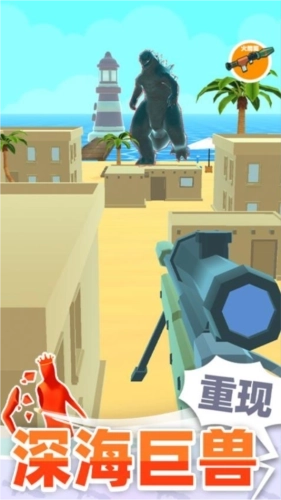 2、在《巨人猎手》中,玩家们将化身为建筑顶端的狙击手,凭借手中的狙击步枪对巨人展开攻击,以此解救处于危难之中的无辜民众。