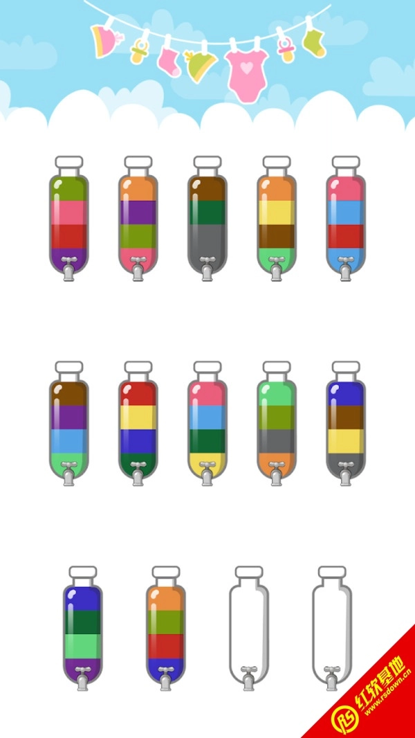 4.视觉上极为舒适,操作上没有太多困难,使用不同颜色的水进行混合和更改颜色以应对挑战