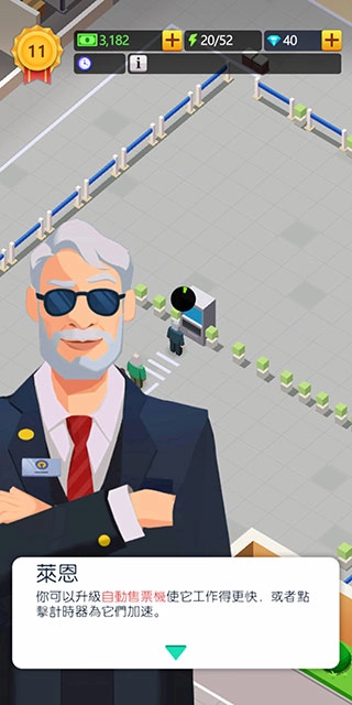 3、旅客到火车站的首要任务是购票,我们可以通过升级购票设备,或是点击头顶的计时器来提升旅客的购票效率。