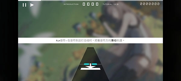 5、校准结束后进入教程环节,当音符移动到打击线位置时,按照音符的方向滑动轨道。