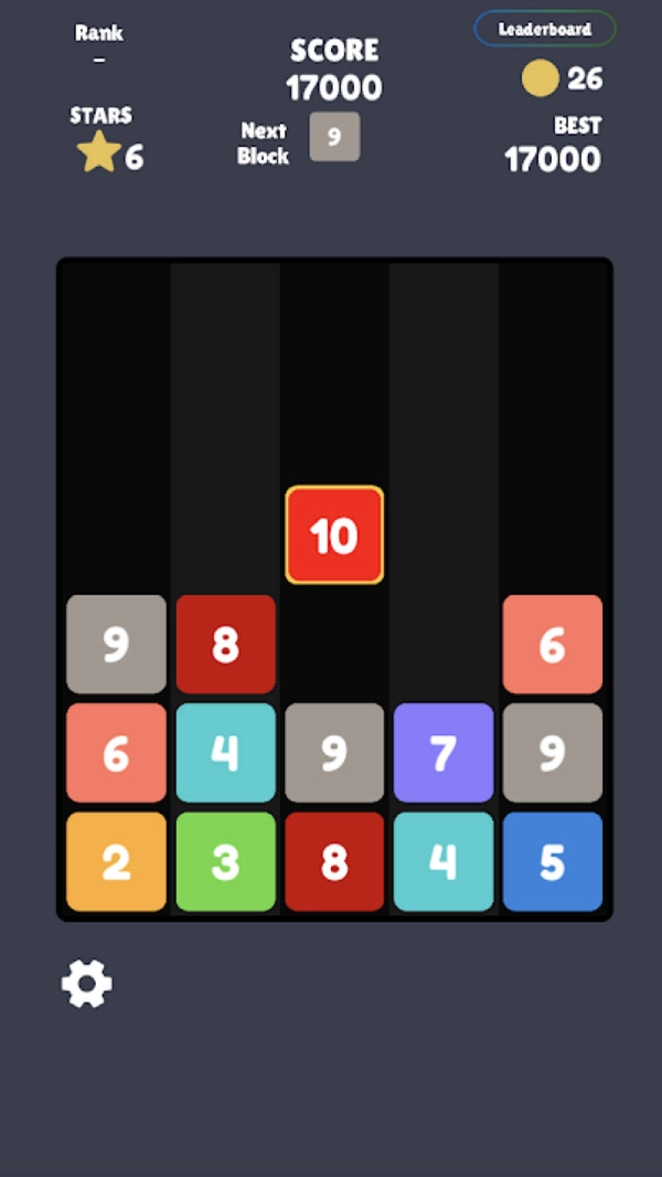 把数字方块放到空白位置。要是遇到相同的数字,这些数字就会下落并变成星星。当没有地方可以放置方块时,游戏就结束了。