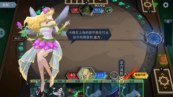 10、献祭卡牌能提升一点法力值与法力上限,操作方式为将卡牌拖动至右侧的蓝色盘中。
