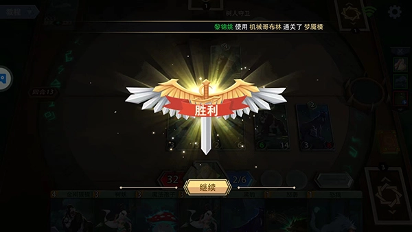 14、英雄在自身回合会自动发起攻击,我们要合理运用英雄技能、抓取卡牌,选择结束行动就可以了。